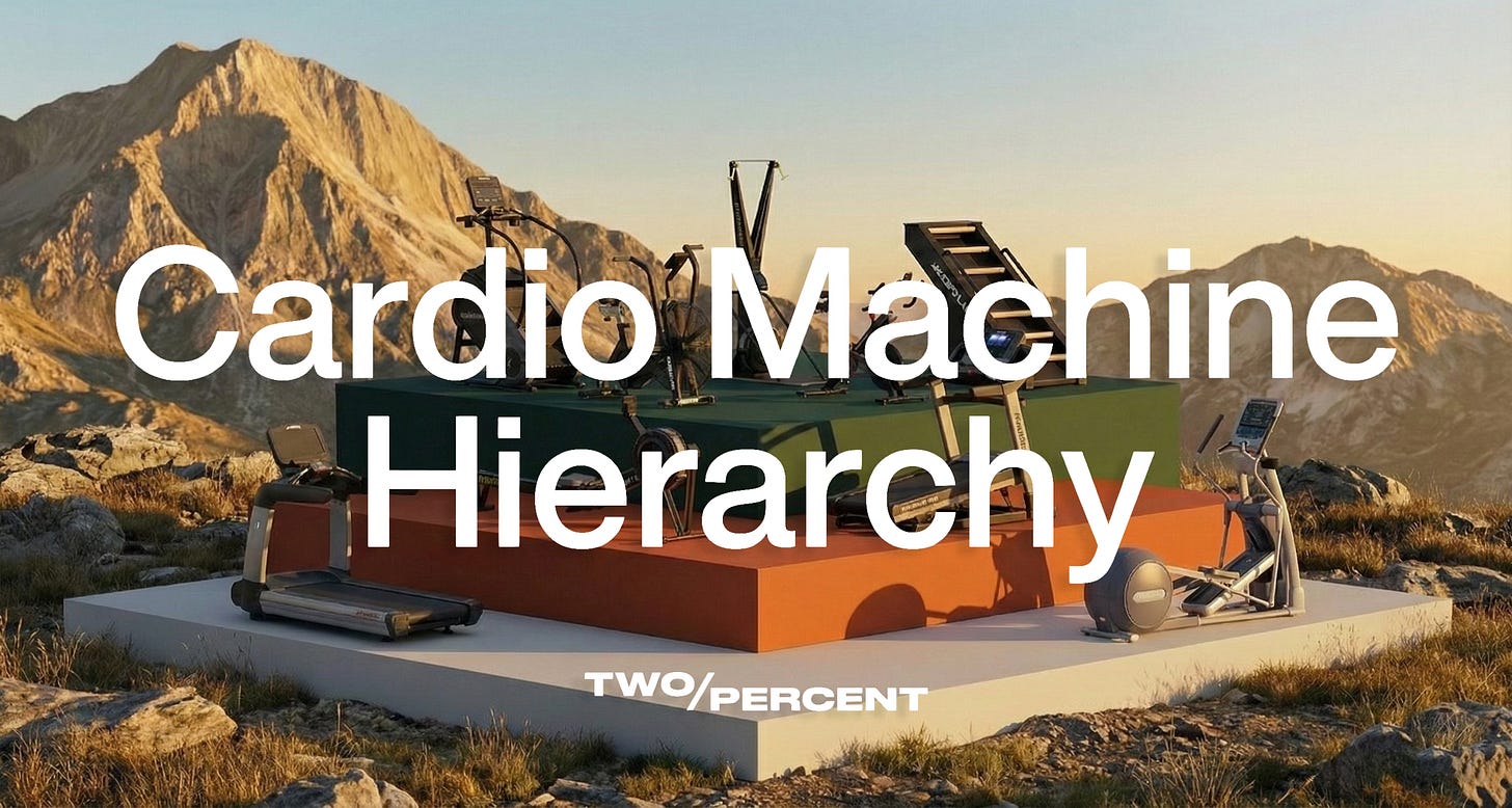 Below you’ll find a hierarchy of cardio machines. I’ve separated them into three tiers: