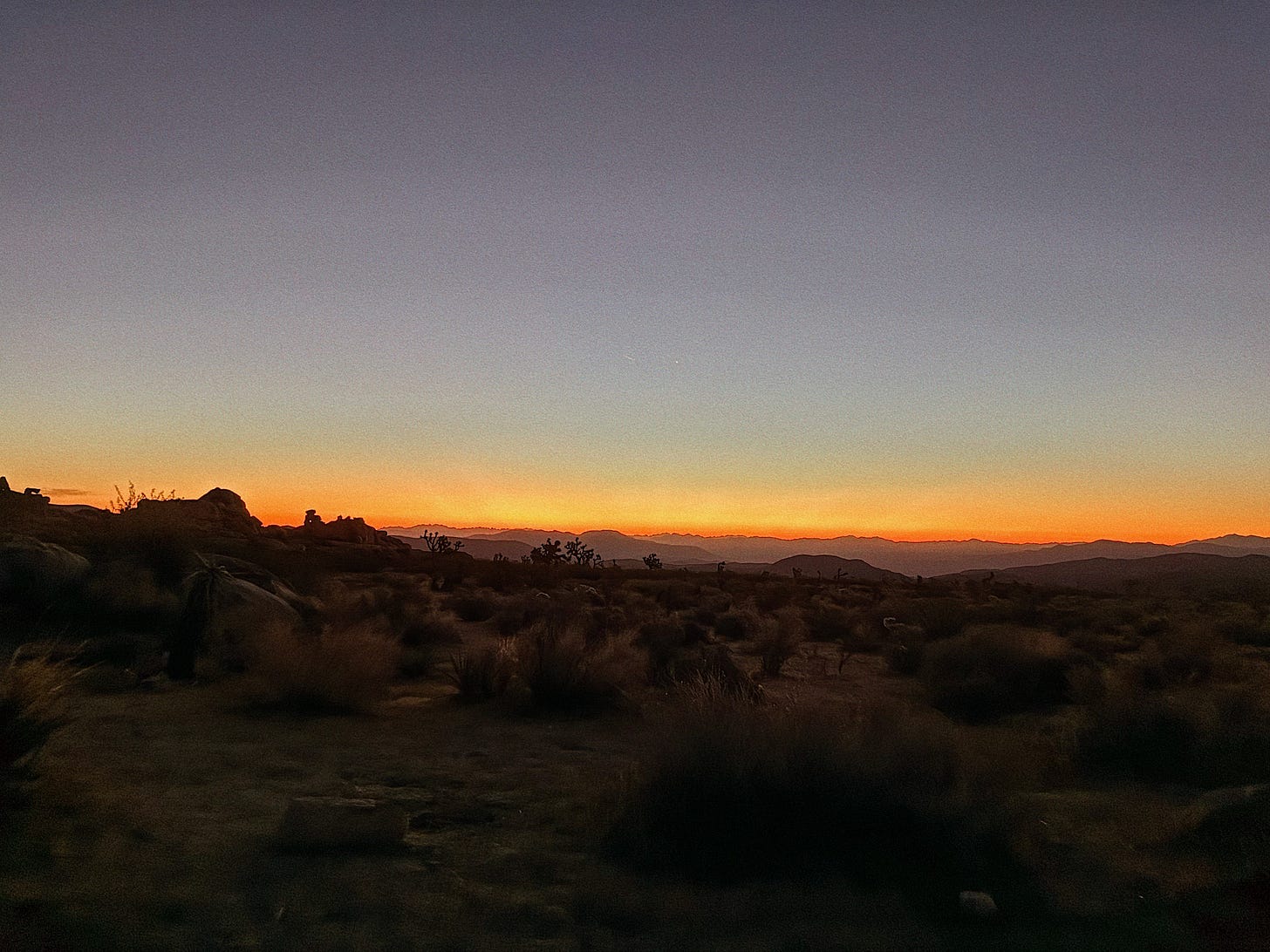 Our headlamps caught the haunting frames of Joshua Trees as we hiked under the stars. “Here,” Matt said after 40 minutes, and peeled off the trail.