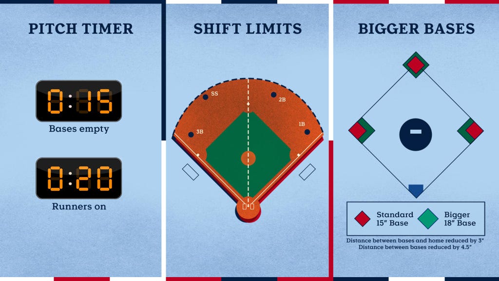 The MLB put pitchers on the clock. Pitchers now have 15 seconds to throw a pitch with empty bases and 18 seconds with runners on base. The MLB also limited the number of pickoffs a pitcher can throw, eliminating a lot of dead time.