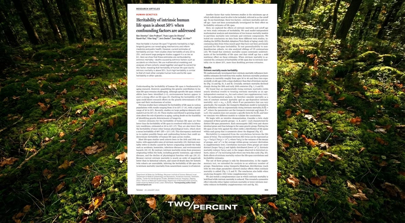 The exact percentage of your lifespan controlled by DNA vs. lifestyle.
