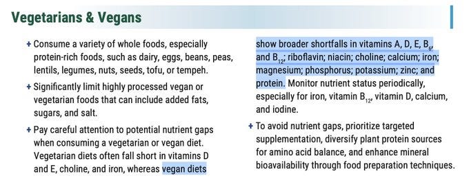 My take: If you’re going to call out restrictive diets for nutrient gaps, call them all out, not just the ones your political in-group dislikes.