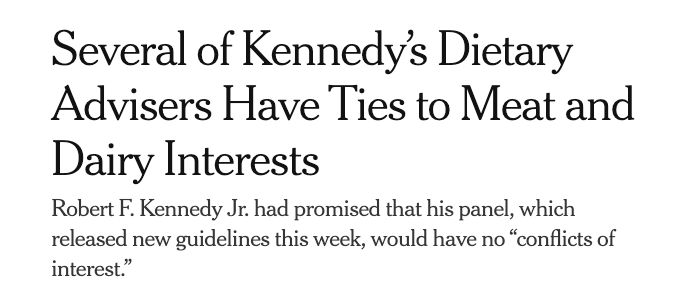 One of RFK Jr.’s main critiques of the old guidelines was that they were written by people with conflicts of interest/ties to the food industry.
