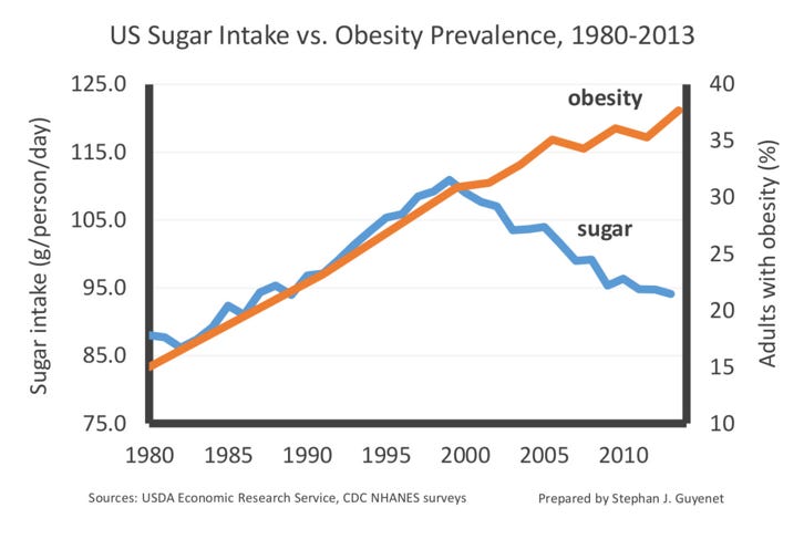 Percent decrease in sugar consumption among Americans from 2000 to 2015. During the same period, obesity grew by about 15 percent.