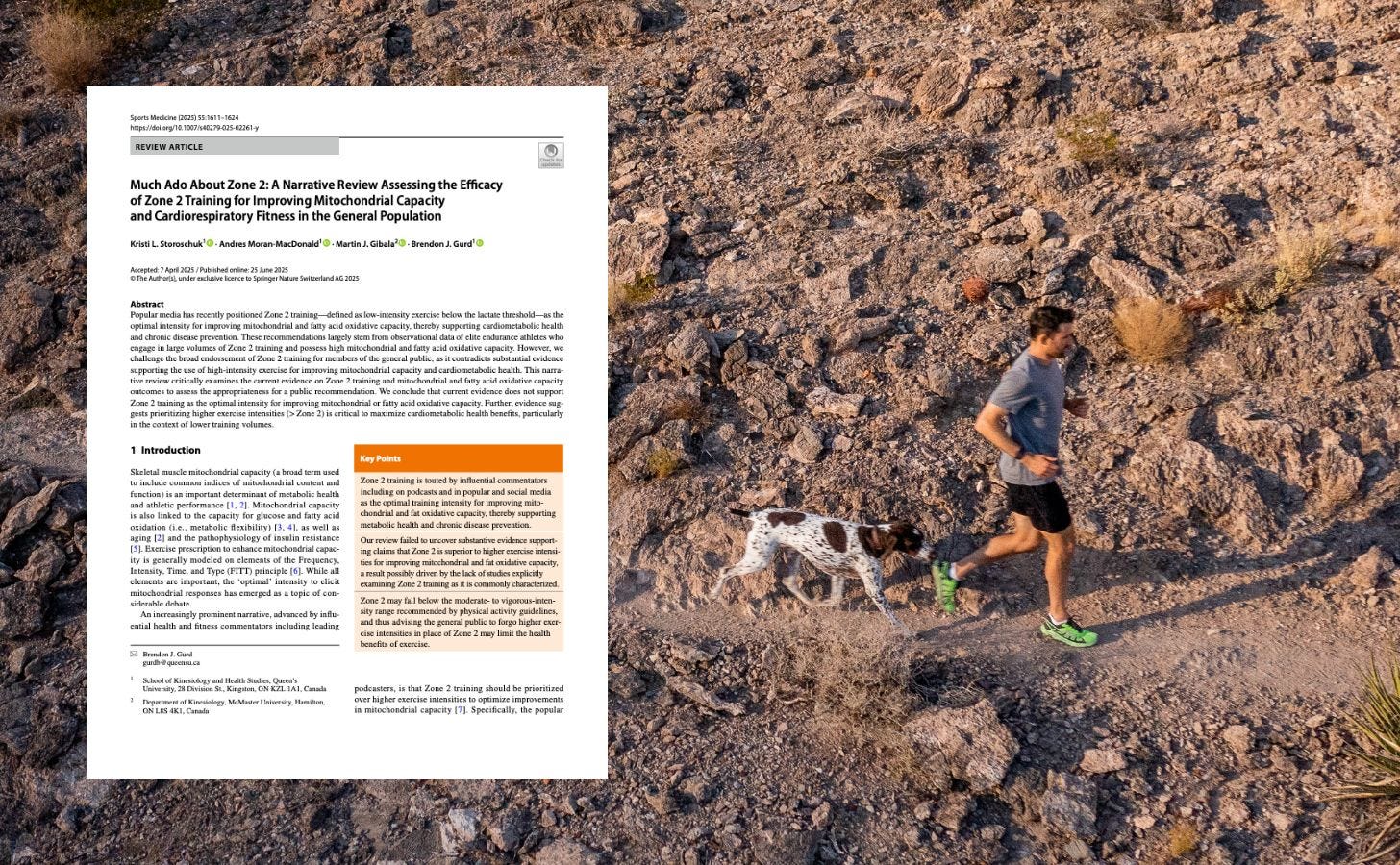 Storoschuk KL, Moran-MacDonald A, Gibala MJ, Gurd BJ. Much Ado About Zone 2: A Narrative Review Assessing the Efficacy of Zone 2 Training for Improving Mitochondrial Capacity and Cardiorespiratory Fitness in the General Population. Sports Medicine (2025).