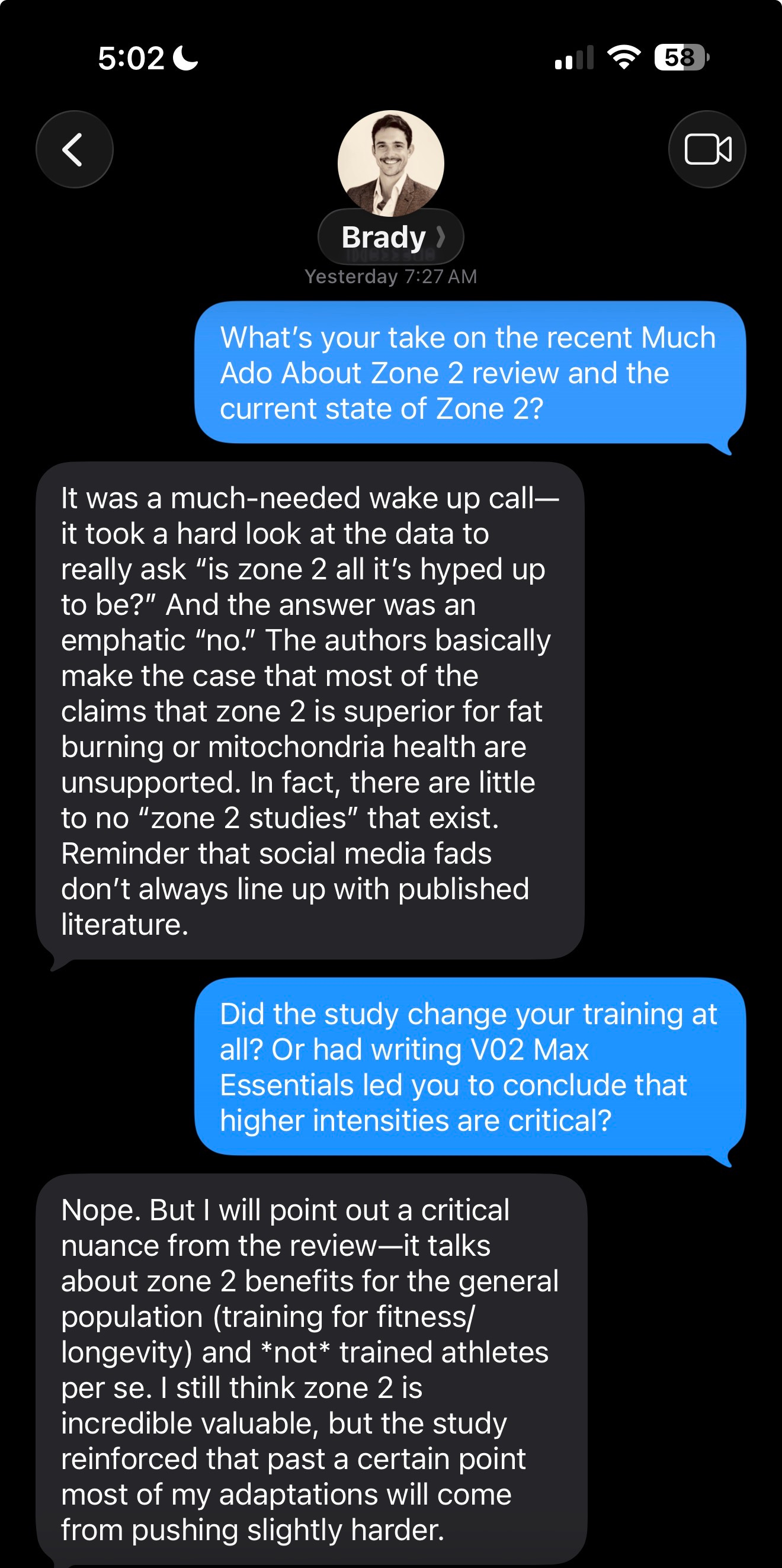 , who writes the great Substack. Brady studied endurance exercise in grad school, wrote the book VO2 Max Essentials, and is himself an elite endurance athlete.Big takeaways